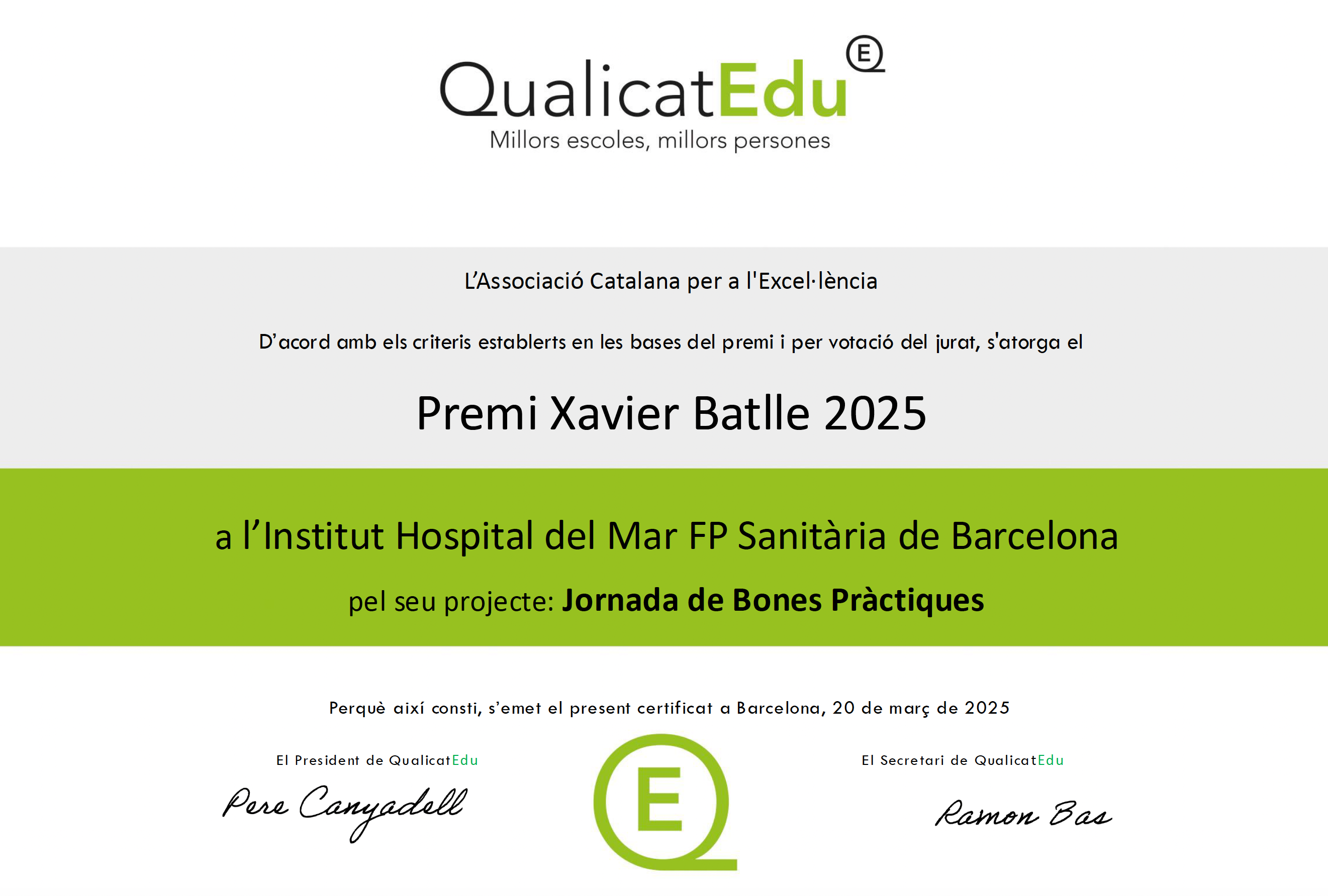 Normativa del premi El 11è premi a les Bones Pràctiques Educatives amb el nom de Premi QualicatEdu corresponent al curs 2025/26 es regeix per les Bases i Normativa següent: 0-Definició de bona pràctica i innovació 1-Bases del premi 2-Normativa del Jurat 3-Criteris d’avaluació